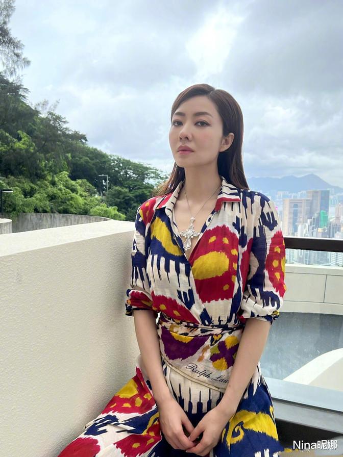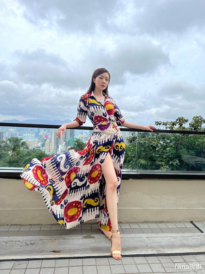 很少如此细腻着装的熊黛林,这次天台乘凉打扮的非常精致,为了避免领口单调,特意佩戴了项链,除此之外金色的高跟鞋越发显得腿长,都跟栏杆平行了,甚至还高出一截,美得过分这次。