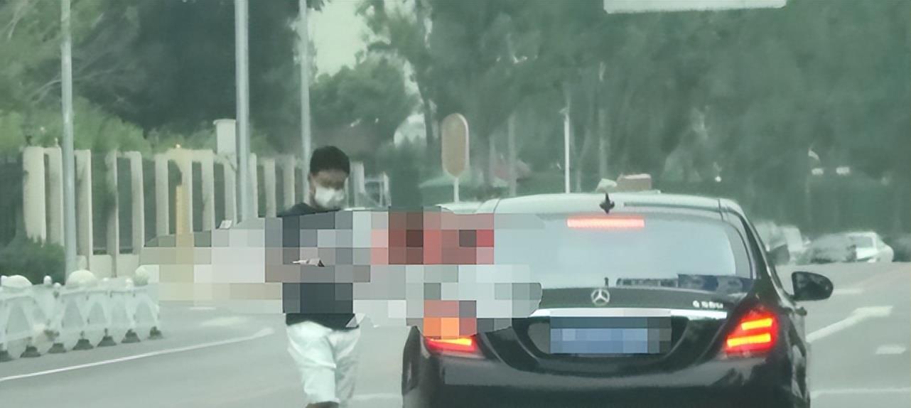 等待的过程中似乎有些累了,释小龙摘下口罩喝水,还十分警惕地左右张望,生怕被人拍到。