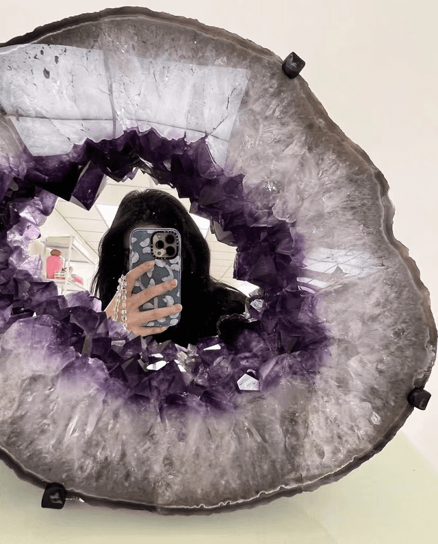 从镜子的大小可以判断出这块紫水晶的大小,价格难以估量。