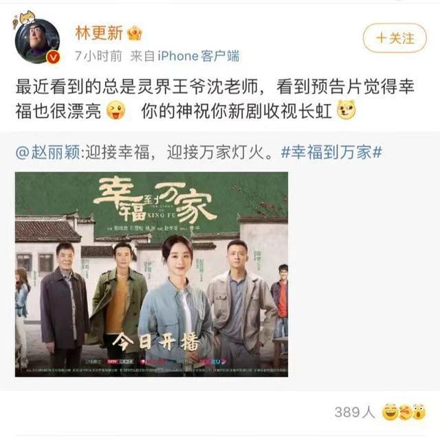 和赵丽颖二搭演出《与凤行》的林更新也为赵丽颖新剧吆喝,说最近看到的总是灵界王爷沈老师,看到预告片觉得幸福也很漂亮,你的神祝你新剧收视长虹。