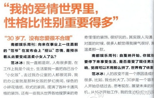 觉得范冰冰要独自美丽,不应该落入靠男人的俗套。
