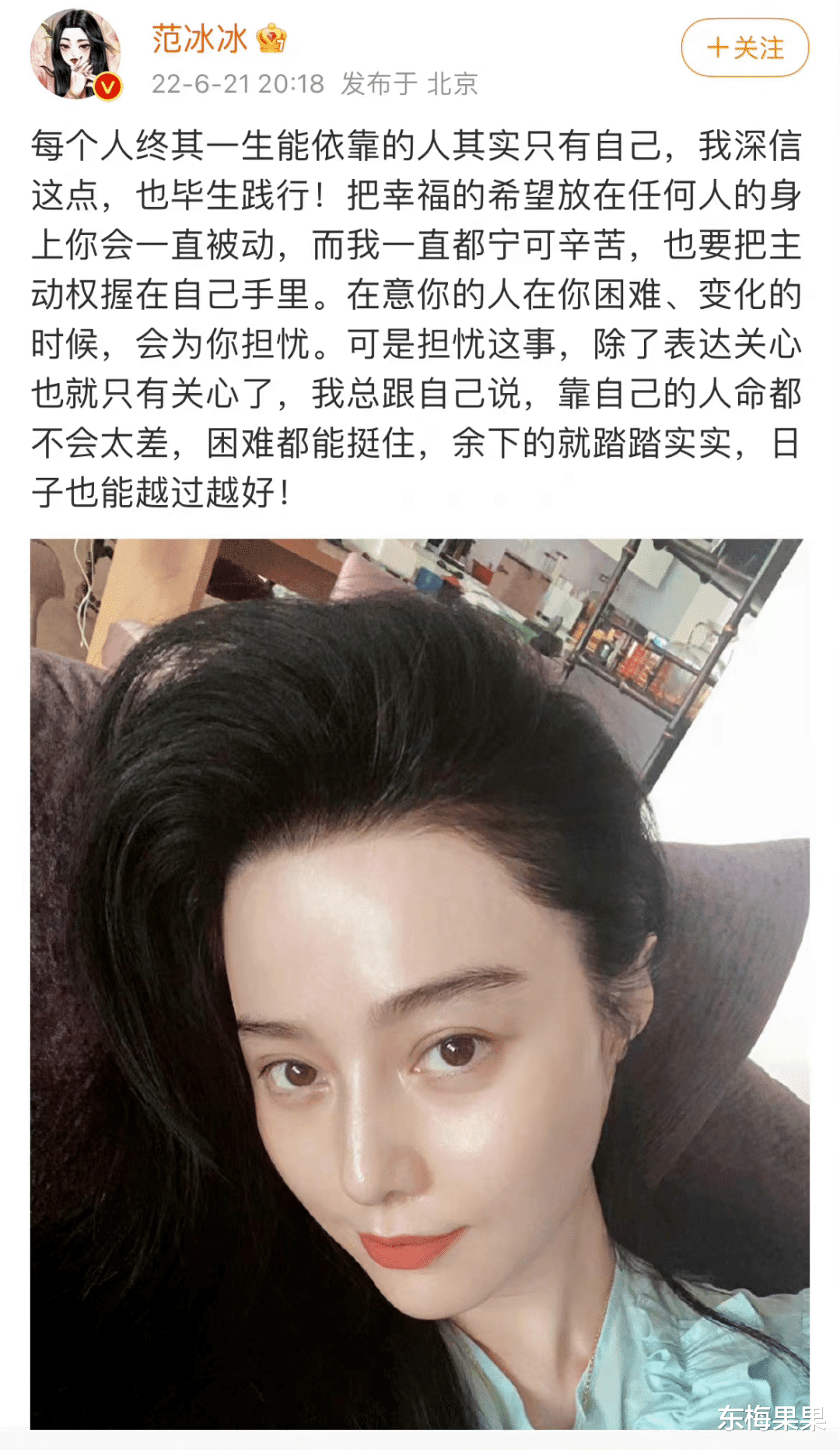 正如范冰冰自己所说的,“每个人终其一生能依靠的只有自己,我深信这点,也毕生践行。”