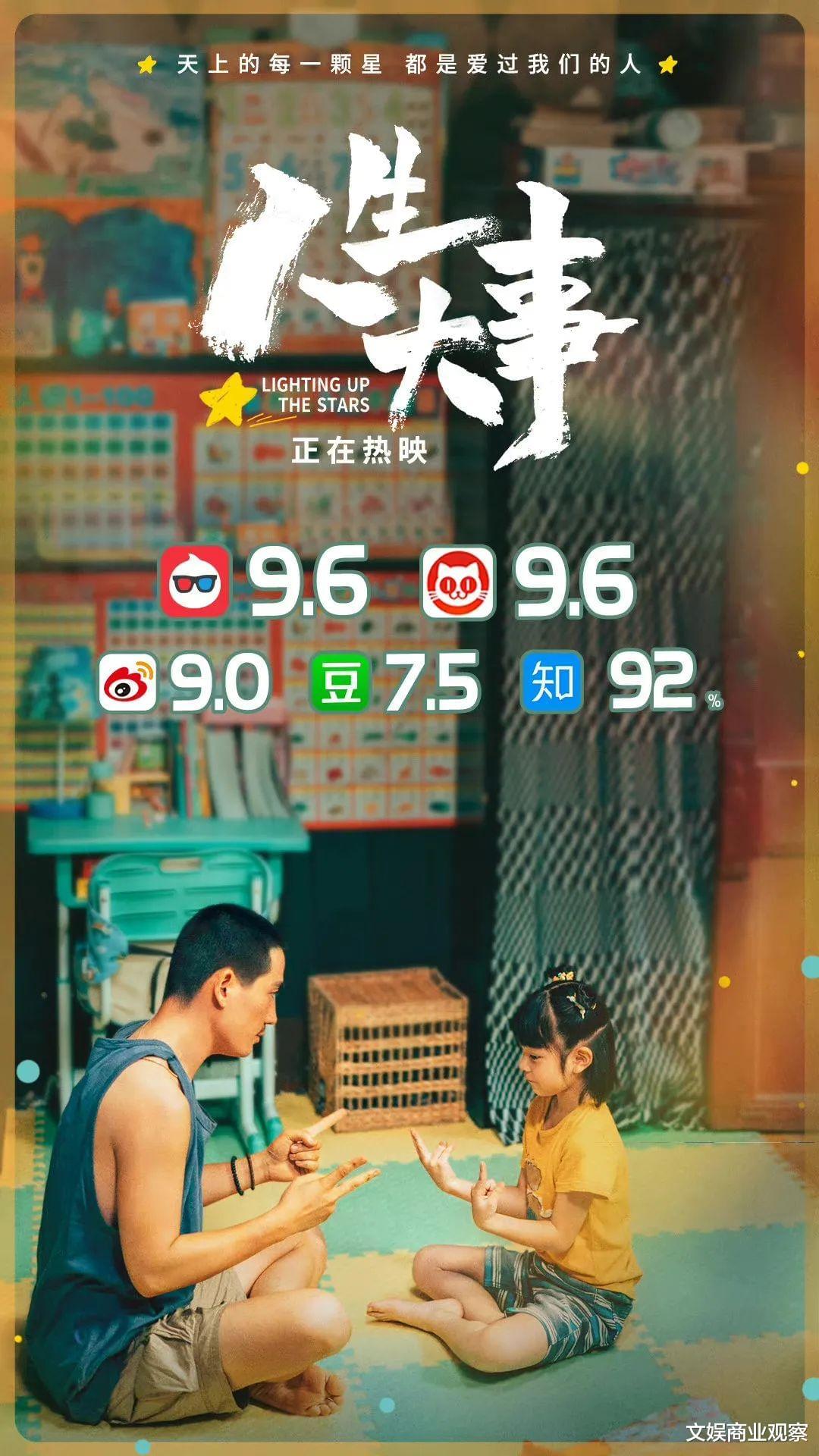其次是口碑。6月19日,二轮点映开启后,《人生大事》火速刷新了近三年来剧情片、家庭片的口碑新高,猫眼、淘票票双平台评分均达到9.7。