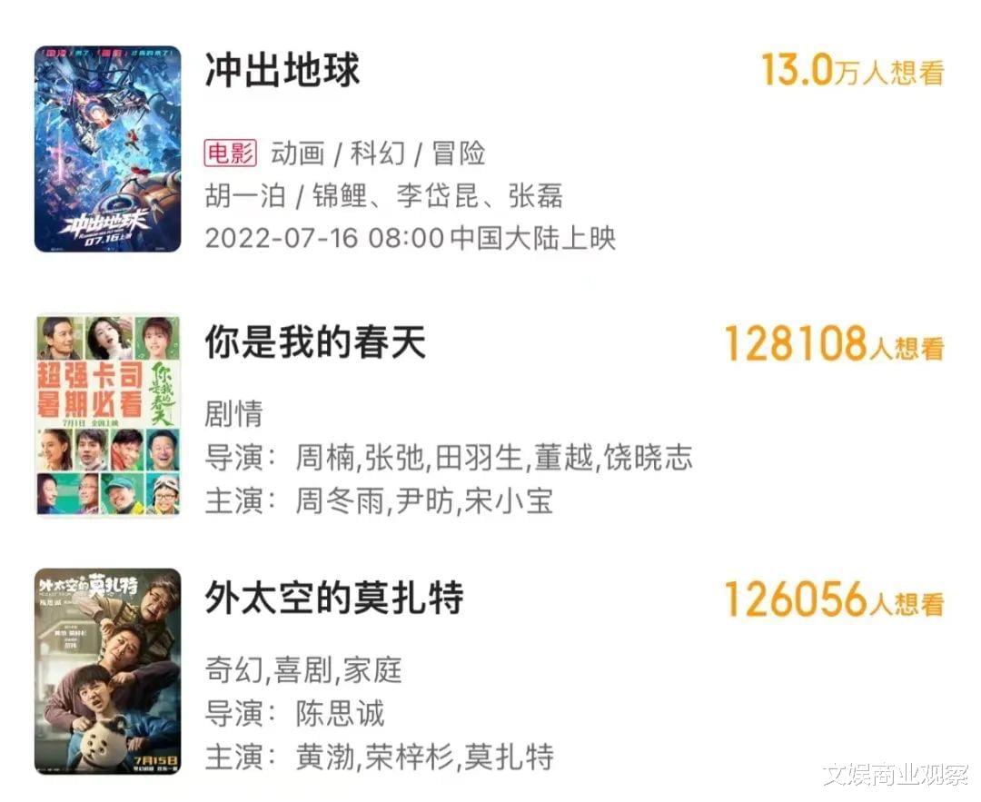 综合来看,暑期档目前的征战选手都不具备显著的“爆款品相”,受题材与类型限制,发酵成大黑马的可能性也有限,即便是《外太空的莫扎特》。