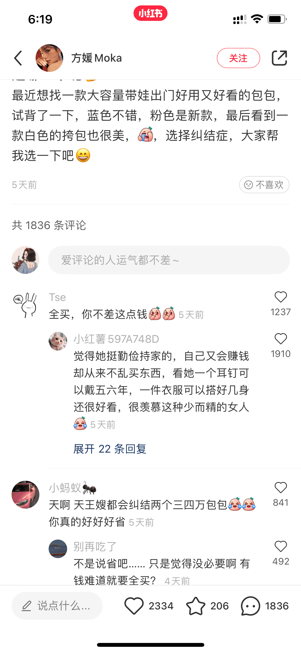 一边秀着恩爱,说郭天王对自己有多体贴,一边花钱慎重,连买个包包都要思虑良久。