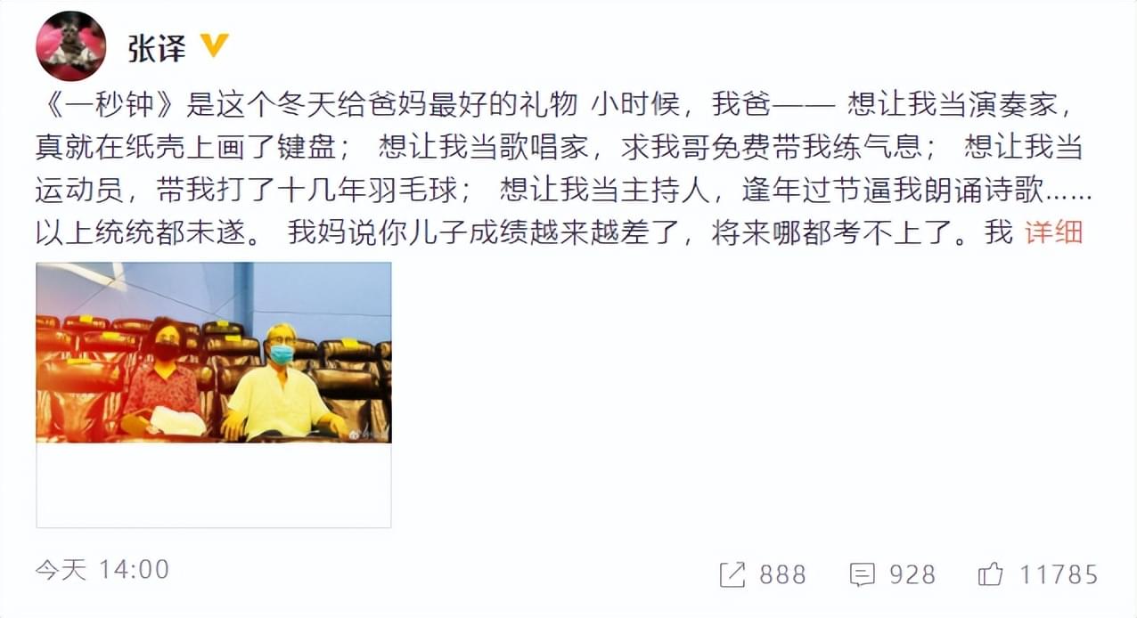 长大后的张译回忆道:“我爸是一个音乐老师,这是一件太悲哀的事情了。因为他会倾尽所能,把他会的东西或他觉得应该学的东西都教给我。”