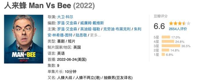 另外,憨豆先生有个短剧,或者叫短片集《人来蜂》也出了,同样来自网飞。