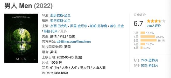 那就是,新出的恐怖片《男人》