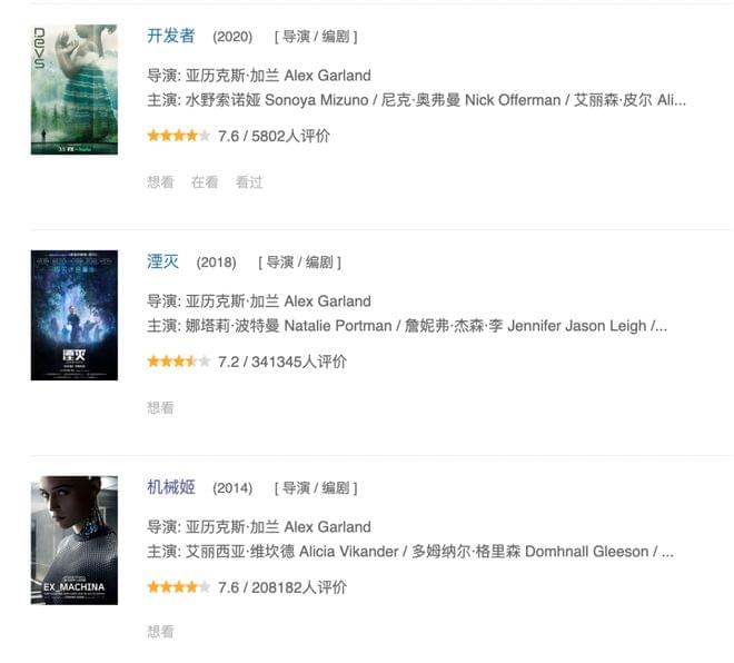 亚历克斯·加兰之前的几部影片,无论评价如何,还是很多死忠粉的。
