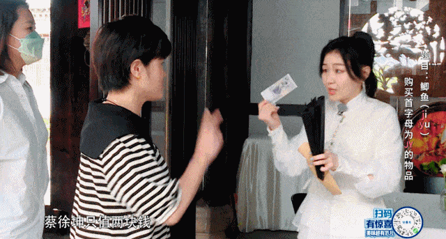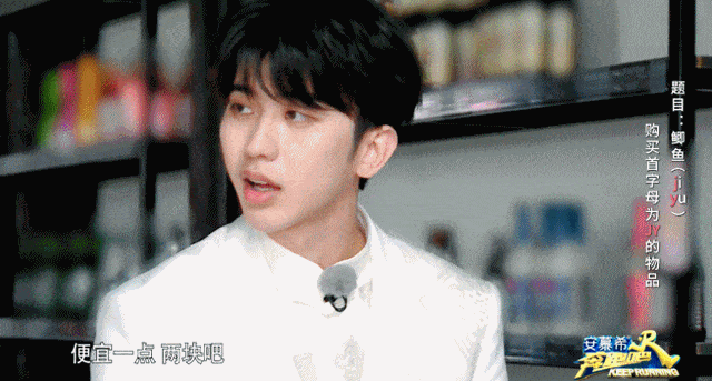 购买首字母为JY的物品。金靖拿到酱油之后和老板砍价,金靖对老板说“他是蔡徐坤”老板说“那蔡徐坤两块钱。”“蔡徐坤就值两块钱?给你五块吧!”金靖这喜剧人设没谁了。