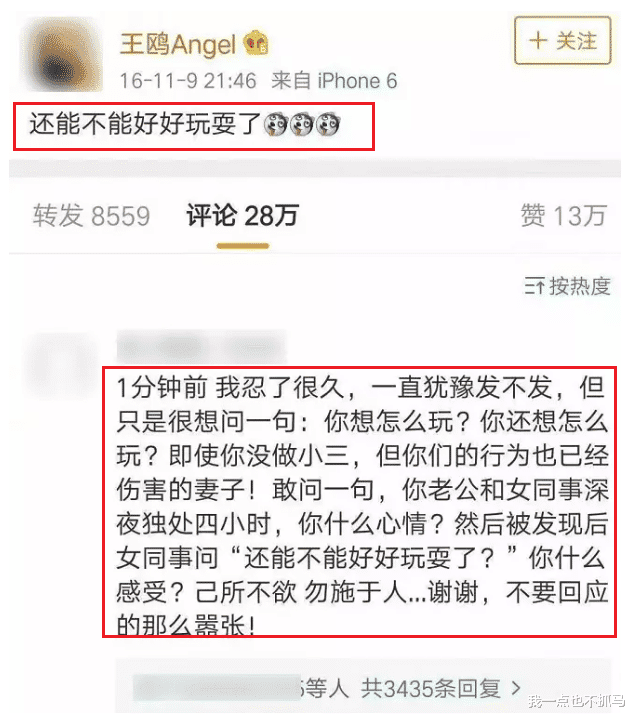 在不恰当的时间,和不恰当的场合,毫不避嫌地“对剧本”;在充满揣测和误解的娱乐氛围下,用戏谑的言论作为解释;不管是否真有其事,是不是真的插足,这句话都太招黑。王鸥路人缘这么差,“夜光剧本”功不可没,她的回应更是雪上加霜。之后任凭她怎么解释如何冤枉如何委屈,也洗不掉她在大众眼里的坏印象。有网友更是将之称为王鸥的代表作: