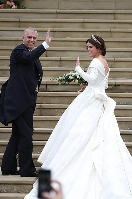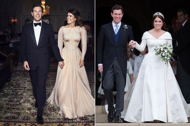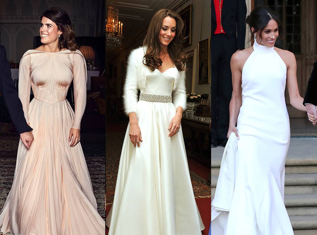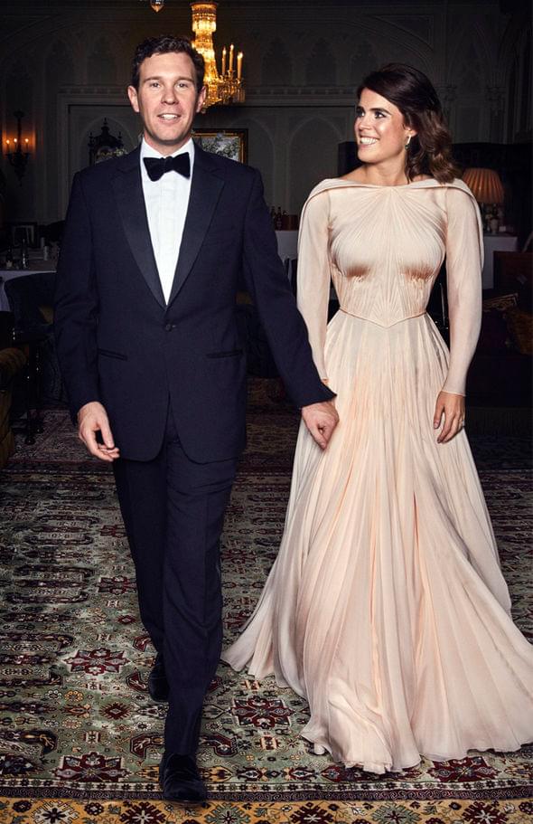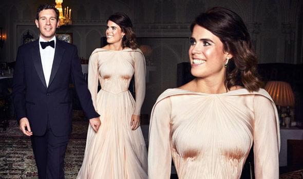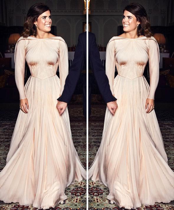 婚礼的晚间,尤金妮公主换上了Zac Posen设计的香槟色长袖褶皱礼服,裙子的颜色被描述为“英国玫瑰的光辉”,也代表着新娘父亲约克公爵的封号,约克的代表物:白玫瑰。