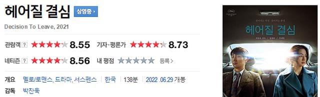 凭借出色的口碑,还是大导演朴赞郁的电影作品,《分手的决心》在韩国上映,势必会火成为一部票房爆款。