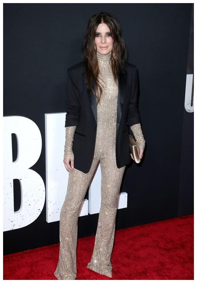 202111月30日,桑德拉·布洛克(SandraBullock)在其电影《不可原谅的人》(theUnforgivable)的首映式上,身穿闪亮的连体裤和西装。