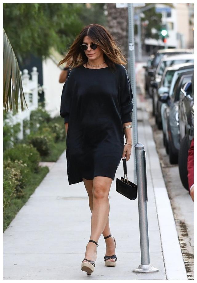 2019年7月25日,桑德拉·布洛克(SandraBullock)穿着黑色连衣裙与丈夫在西好莱坞(WestHollywood)共进晚餐。