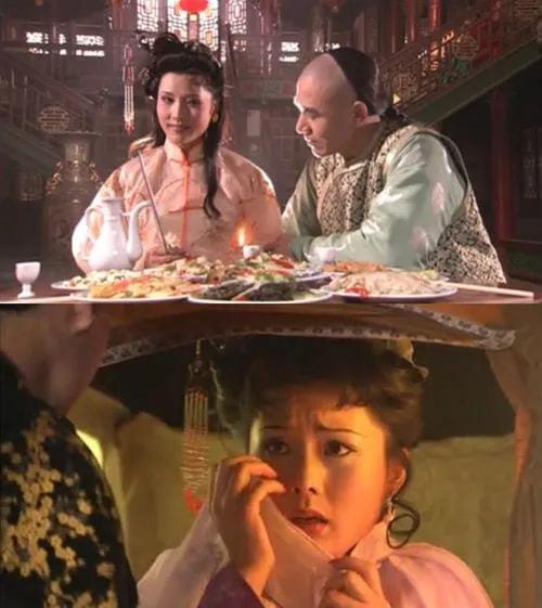 正当陈宝国不知所措的时候,何赛飞轻轻地抚摸着陈宝国的脸,泪流满面,轻轻地吻了下去,然后依偎在陈宝国的怀里,浓情密切。陈宝国饰演的白景琦仿佛也忘记了之前的大嘴巴子,只能受着了。这个镜头一遍过,这就是又爱又恨,成为《大宅门》的经典镜头。两个人相视一笑,事后陈宝国问何赛飞:“谁给你出的注意?”何赛飞:“是刘佩琦老师。”陈宝国笑了笑:“我一猜就是他。”对于这个临时做出决定的镜头,两名优秀演员都是一条过,可见二人的演技是多么的精湛。《大宅门》中的杨九红和白景琦有着复杂的情感纠葛,杨九红出身卑微。出生于青楼的她让白景琦不顾家人的反对毅然决然地娶他过门。好不容易熬来了怀孕生子,也是孩子又被白家的二奶奶抢了去,一个母亲不能守着亲生骨肉是多么的寒心。又盼来了怀孕,杨九红害怕之前抢夺孩子的戏码再次上演,于是奋不顾身地离开白家前往济南。白景琦得知杨九红要离开家,于是着急地追到车站,由此便有了开头的一幕。何赛飞凭借杨九红的角色名声大噪,知名度立马上升了一个档次。可是当时杨九红这个角色是定的蒋雯丽。
