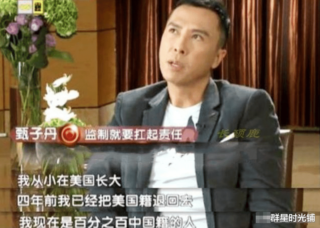 甄子丹其实在他饰演的许多多电影中,大多都是与民族、国家正义有关题材的,而且他自己也表示非常看不起口是心非的爱国人,一边说自己中国人,一边想着出去的人。