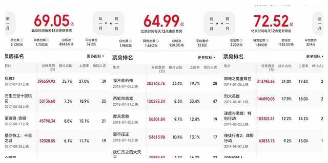 暑期档连续三年失血暑期档本来是一年中最大的一个档期,广义上来讲,六七八月都属于暑期档,在北美,很多好莱坞大片都会选在暑期档上映。中国学生的暑假时间一般是七月中上旬到八月中下旬,所以国内讨论的暑期档一般是指七月、八月,重磅新片一般也是从七月第二个周末开始上映。比如今年7月8日周五,有《神探大战》《惊天救援》《学爸》《新秩序》四部新片,7月9日周六,有《海底小纵队:洞穴大冒险》。