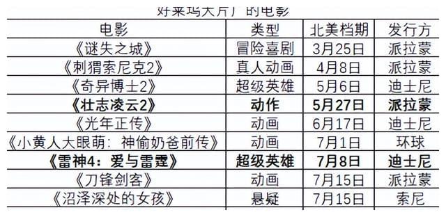 其他排在票房榜前列的如《新蝙蝠侠》《侏罗纪世界3》《神秘海域》《神奇动物3》《坏蛋联盟》都已引进上映,还没引进的就剩派拉蒙的真人动画《刺猬索尼克2》、冒险喜剧《谜失之城》,以及迪士尼的动画片《光年正传》。进入七月,北美影市也有点闹“片荒”。重磅大片就《雷神4》一部,将于7月8日上映。