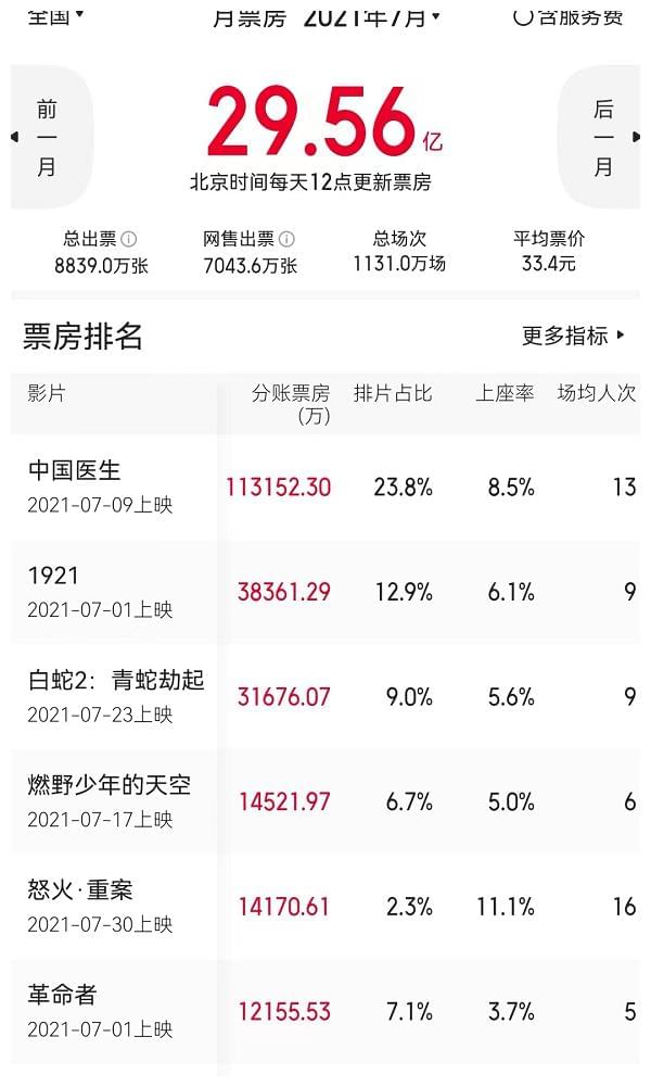 2021年疫情的影响暂时退去,影市恢复正常,但暑期档表现并不突出,七月、八月上映了《中国医生》《1921》《白蛇2:青蛇劫起》《燃野少年的天空》《怒火·重案》《革命者》《盛夏未来》等新片,没一部爆款。