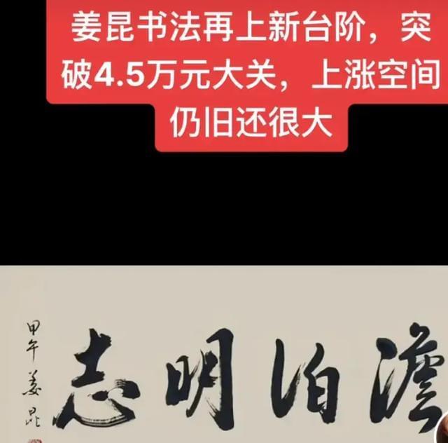 如今姜昆的书法逐渐水涨船高,一幅字4万5,算得上是一字抵千金了。