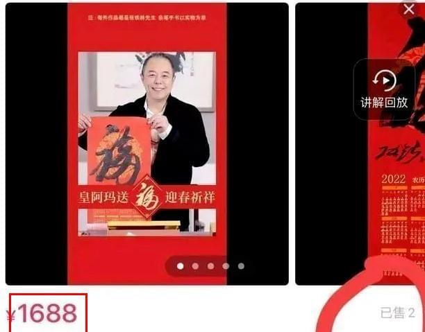 现在的老牌明星,上点年纪就开始研究书法卖字画了。春节期间,张铁林也在直播间卖起了字,他亲手写的一个“福”字售价高达1688元。