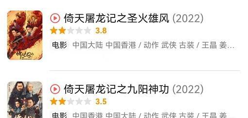 不仅是过气艺人,连导演王晶也试水了网络大电影,带着一群大龄艺人,翻拍《倚天屠龙记》。这一拍就是两部,每一部都是骂声不断,评分都没过4分的烂片。