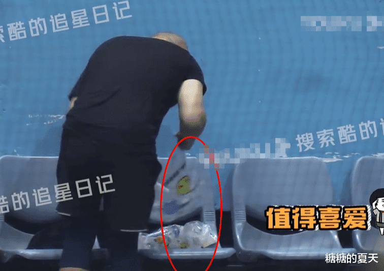在和好友打完羽毛球后,好友在一旁收拾衣服球拍等,岳云鹏则在一旁默默收拾椅子上的垃圾,佝偻着厚实背部的他拿起塑料袋装好空的矿泉水瓶、用过的纸巾等,这样的高素质让大家不得不为他在心里竖大拇指。