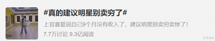 前几日,一名许久不露面的选秀艺人,在节目中自曝已经整整九个月没有收入。“唱跳七年,负债百万”几个大字打在节目的封面上。只可惜,这则探讨艺人生活困境的报道,并没有收获网友的同情,反倒引起舆论一片哗然。当天“真的建议明星别卖穷了”登上热搜第一,点进其中不乏嘲讽的评论: