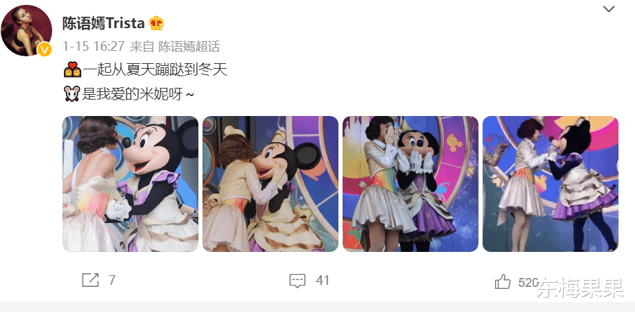 面对网友的惋惜,她大方在微博里晒出自己的迪士尼工作照,说要和最爱的米妮从夏天蹦跶到冬天。