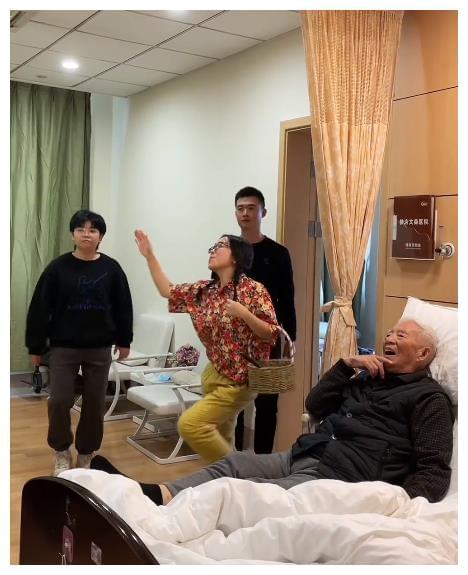 这不,知道外公住院后整日闷闷不乐,东方不败立马带上自己的小姨子和怨种老公来到病房,二话没说直接在病床前送上了自己的才艺祝福。