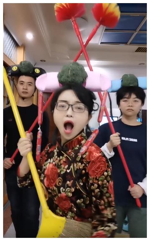 刚模仿完动漫人物,她又瞬间穿越到了清朝,一双拖鞋,一个西兰花,两串火腿肠就是她的旗头。