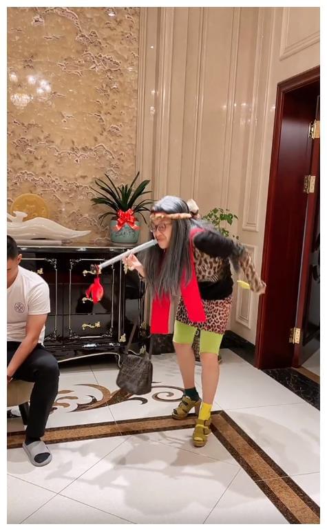 东方不败在家里是一刻也不停歇,带上假发套,披上红围巾,绿色打底裤,踩上高跟鞋。她立马又变成了家里的快乐泉源