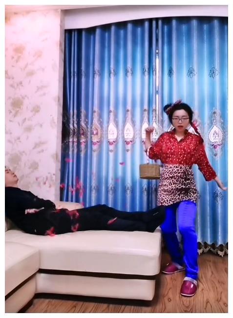 因为老公的偶像是石榴姐,东方不败立马化身成石榴姐,直接将老公吓得滚到了床底。