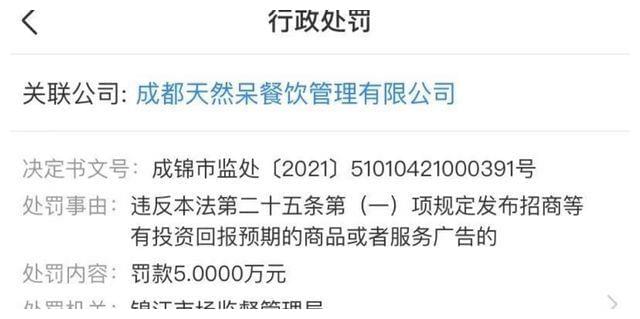 “天然呆”这两年也经常被行政处罚: