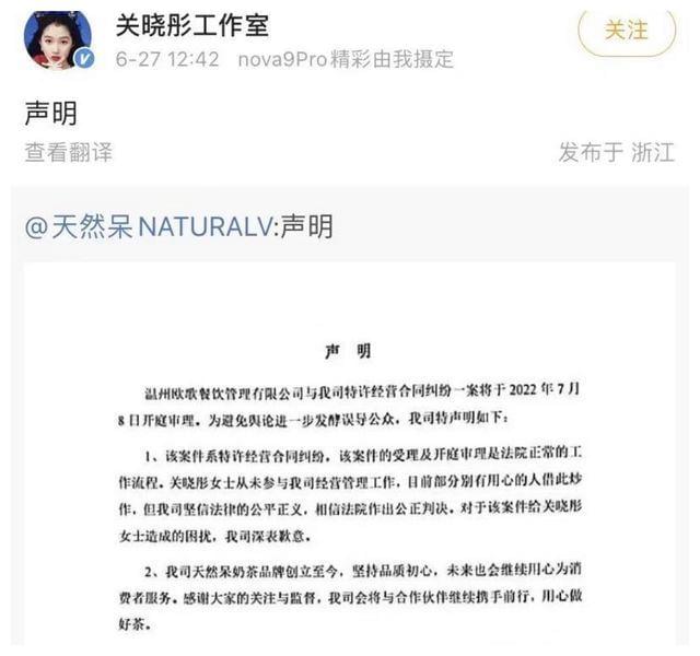 前两天更是直接冲上热搜,工作室也不得不出来解释。大概意思就是这个奶茶店和关晓彤没啥实际关系,她本人日常是不参与经营的。