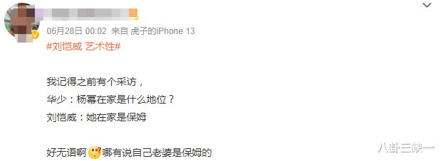 而杨幂粉丝向来也不是吃素的,这不,又给刘恺威续上不少黑料,说他是普信男。华少问刘恺威杨幂在家是什么地位,刘恺威说杨幂在家是保姆。(啊这,说自己老婆是保姆