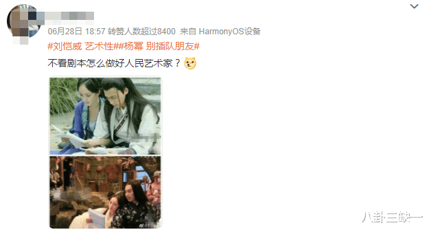 以至于有网友截了刘恺威在剧中的动图出来,就像是在打他的脸,这……莫非就是所谓的艺术性?