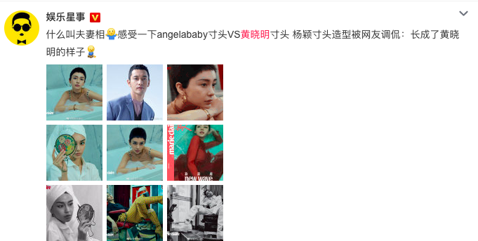 微博大V直言:杨颖寸头造型被网友调侃长成了黄晓明的样子。