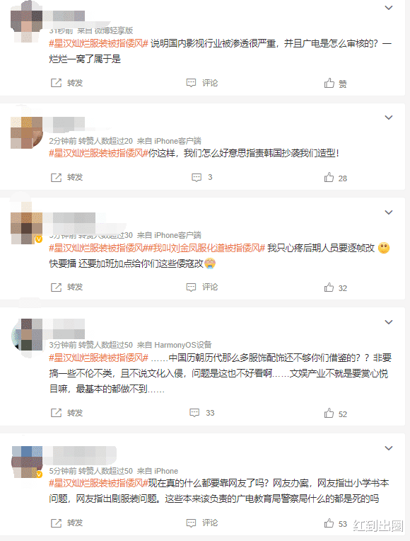 针对这两部剧中出现的“倭风”,网友议论纷纷难忍愤怒,希望其他剧组可以以此为戒,谨慎选择造型师,切勿在大是大非上耍小聪明。
