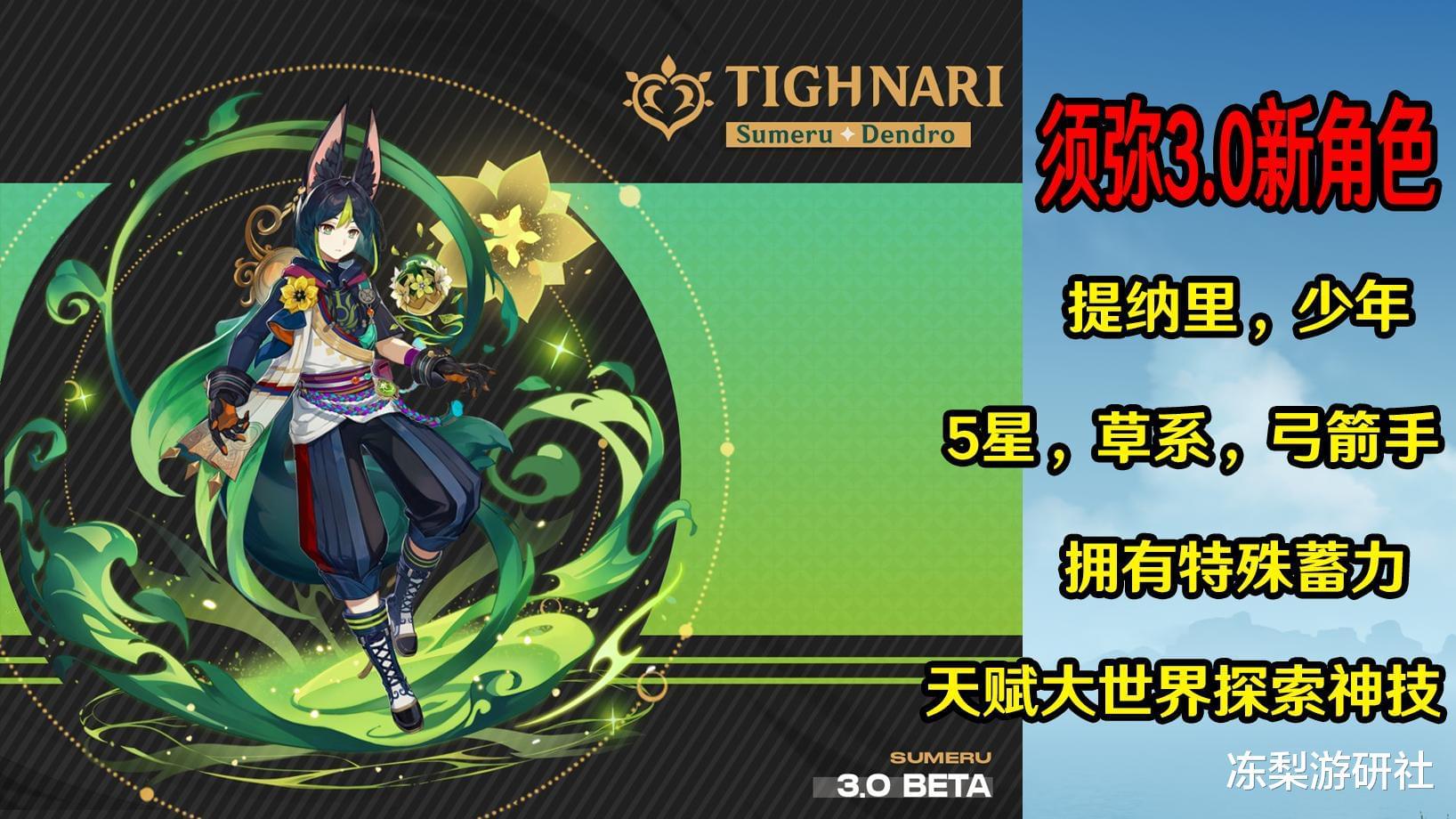 提纳里,这样一位5星草元素弓少年,你感兴趣么?在生活天赋的设定上,会标记周边须弥特产,并且本身拥有特殊二段蓄力箭的设定(据说带有追踪效果),对大世界方面的探索体验而言应该是很不错的。