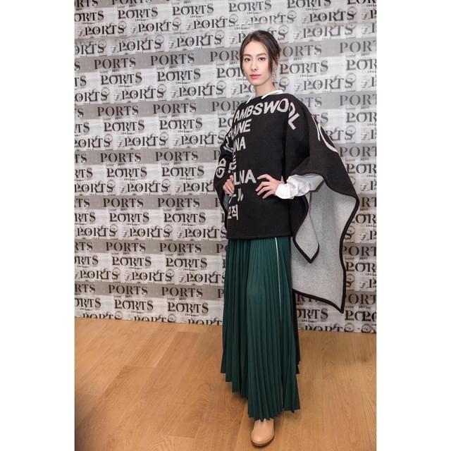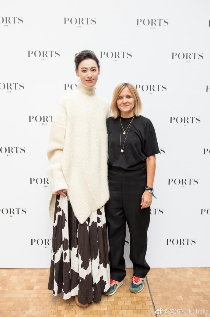 之后正式出席Ports 1961的2019春夏秀,她选了白色流苏高领斗篷款毛衣,搭配黑白乳牛纹长裙,保有了一向的衣品,优雅大气,确实有些似豪门名媛。