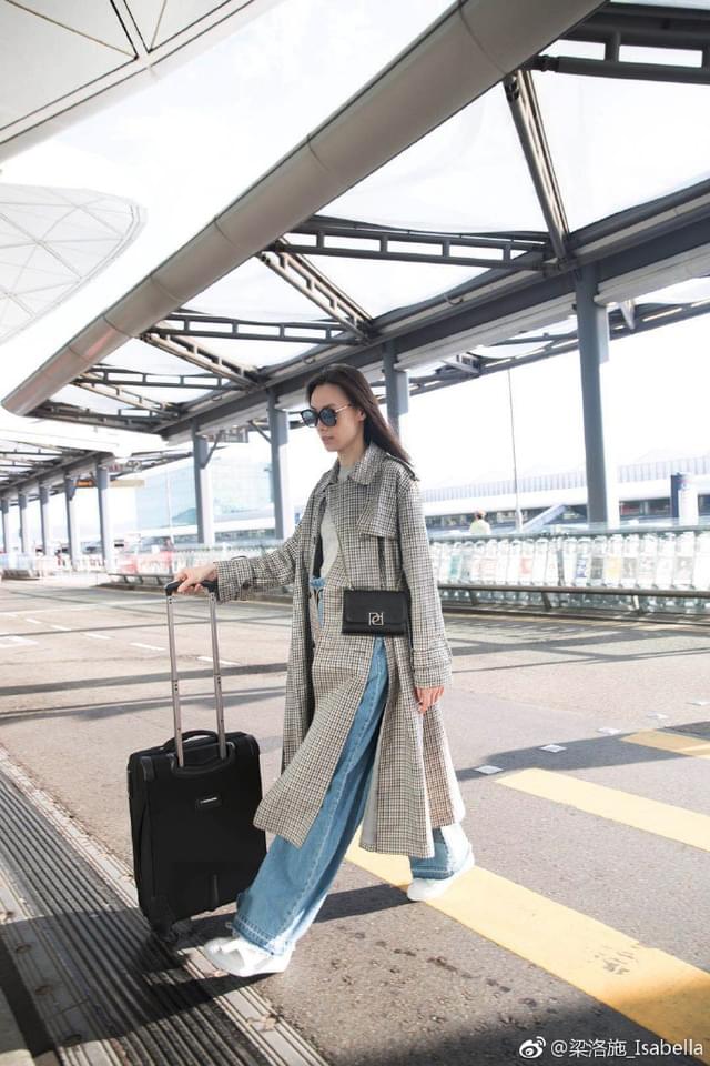 也学一般明星,出发时装周前来组炒作,来个机场街拍:Ports 1961格纹风衣、牛仔宽裤,搭配黑色小手袋,尝试俐落又自信的一面。