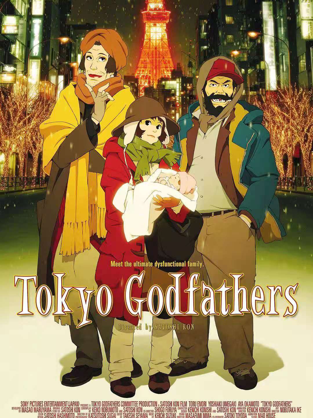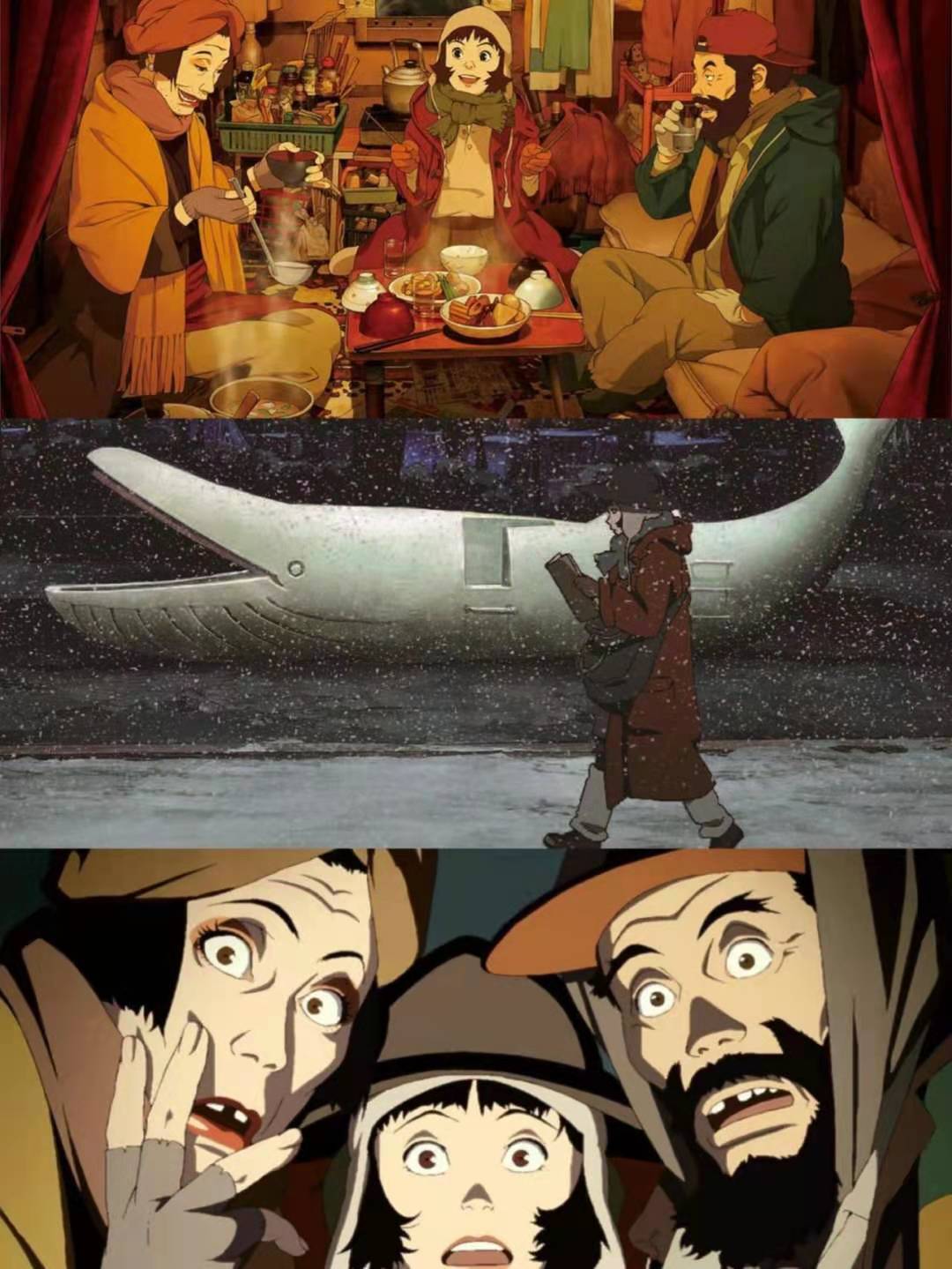 这是一部非典型今敏的作品,不是梦境,不是炫技,而是认真的在讲一个故事,却让我感动、震惊,每年都要看一遍。在最冷的冬夜有一个大团圆,温馨治愈的结局,让人充满希望。