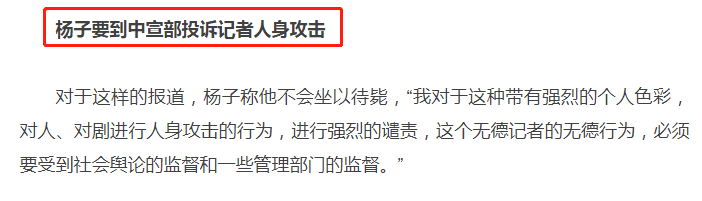 不知是记者的话太毒辣,还是戳中了杨子的敏感点,这篇报道出来后,杨子完全不能接受,气急败坏的要到“中宣部”状告这个记者。