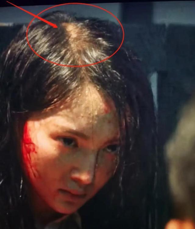 演员金晨也是发量不多的类型,拍摄电视剧《隐秘而伟大》的时候,金晨做了个头发凌乱的战损妆,白白的头皮特别抢镜,令网友质疑她的发量。
