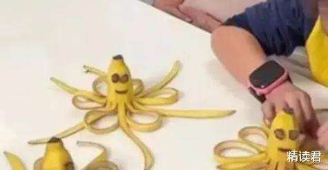 吃剩的香蕉皮,经过她的巧手,摇身一变就成了一只只活灵活现的八爪鱼。