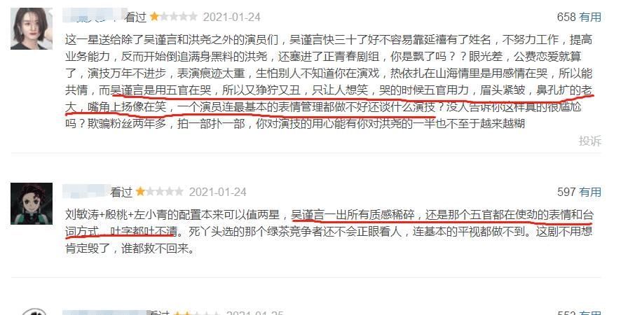 其实之前在《延禧攻略》合作的时候,男主角聂远就曾善意提醒,让吴谨言好好打磨一下台词,只可惜如今3年过去,依旧没有看到吴谨言有多少进步。