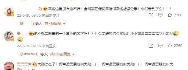 赵丽颖的粉丝立马解释,大勋怎么了,何幸运的男友叫大勋,剧里角色的名字而已,为何要联想那么多呢?还不如去看《幸福到万家》。这里可以引用杨幂的经典广告词,你没事吧!