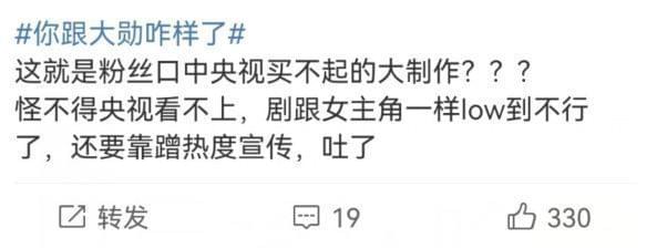 紧接着,杨幂的粉丝已经开始诋毁赵丽颖了,这就是粉丝口中央视买不起的大制作?怪不得央视看不上,并内涵剧和女主角太LOW,还要靠蹭热度宣传。其实一开始,《幸福到万家》是准备在央视播出的,后来不知道什么原因,被央视给退货了。